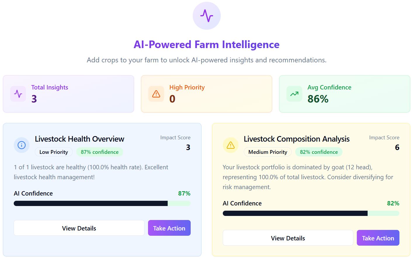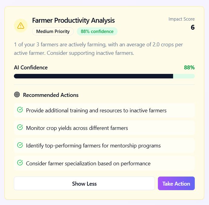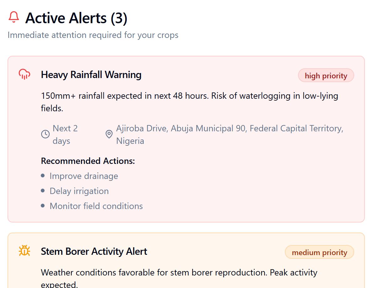 An AI-powered farm management platform that turns smallholder fields into productive, climate-resilient enterprises with real-time crop diagnostics, livestock monitoring, hyperlocal weather intelligence and farm financials in one simple dashboard.